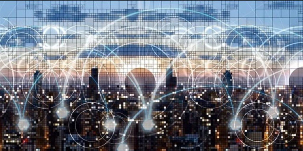 geralt. 2018. Altmann, G. Network, Web, Skyline royalty-free stock illustration. Pixabay. Viitattu 17.6.2025. Saatavissa https://pixabay.com/illustrations/network-web-skyline-pixel-data-3443547/