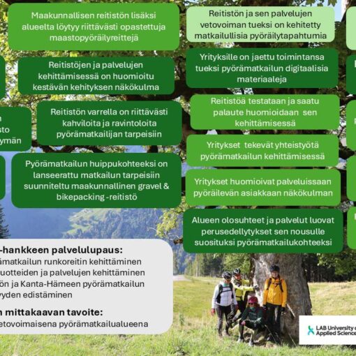 ESR-rahoitteisessa Vahvempana muutokseen – osaava ja hyvinvoiva yrittäjä -hankkeessa (LAB 2023) saatiin vahvistusta ajatukselle, että pienyrittäjät kaipaavat vertaistukea ja mahdollisuutta keskustella yrittäjäkollegoiden kanssa. Hankkeessa kokeiltiin vertaistukeen perustuvaa mallia, jossa 20 Etelä-Karjalan alueella toimivaa yrittäjää osallistui hankkeen järjestämille osaamispoluille. Osaamispolkujen aikana osallistujat kehittivät omaa tietouttaan taloudesta, työhyvinvoinnista ja vihreästä siirtymästä saaden samalla vertaistukea muilta yrittäjiltä ja kontakteja alueella toimiviin yrityspalveluihin sekä verkostoihin.